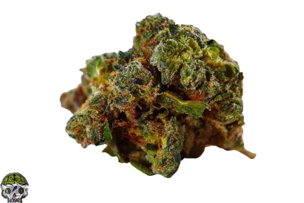 Green Crack often smells of lemon tea, being rich and earthy with a light citrusy undertone. Its genetics stem from Skunk #1 and an unknown indica and can produce dark green cone-shaped buds that are dense and filled with vivid burnt orange pistils. An interesting fact about this strain is that it was renamed by Snoop Dogg. Its original name was Green Kush. This strain is an excellent choice for novice growers since it does well in both indoor and outdoor climates and has been reviewed as fairly easy to cultivate.